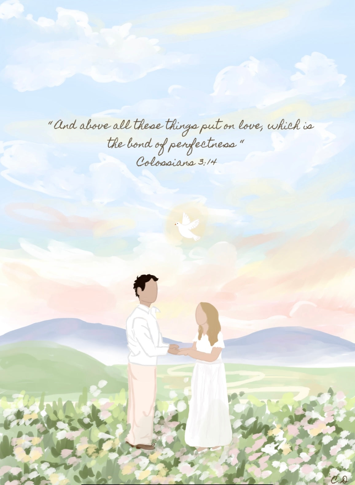 « Je souhaitais offrir quelque chose de spécial à des proches pour leur mariage, un cadeau qui leur correspondait, et j'ai passé commande auprès de Carla ! Le rendu est juste magnifique. Artiste inspirée, talentueuse, à l'écoute, patiente et minutieuse des petits détails, je recommande les yeux fermés si vous souhaitez une illustration personnalisée. Super moyen pour partager sa foi. »
