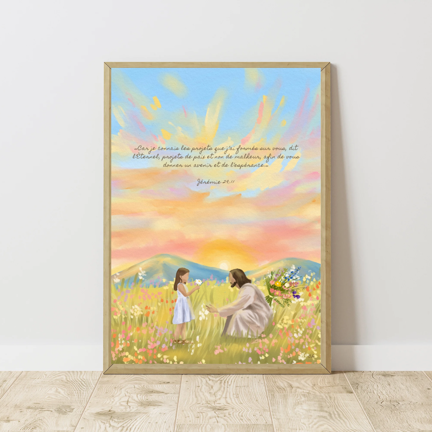 llustration digitale chrétienne du verset Jérémie 29:11, imprimée sur un papier photo satiné