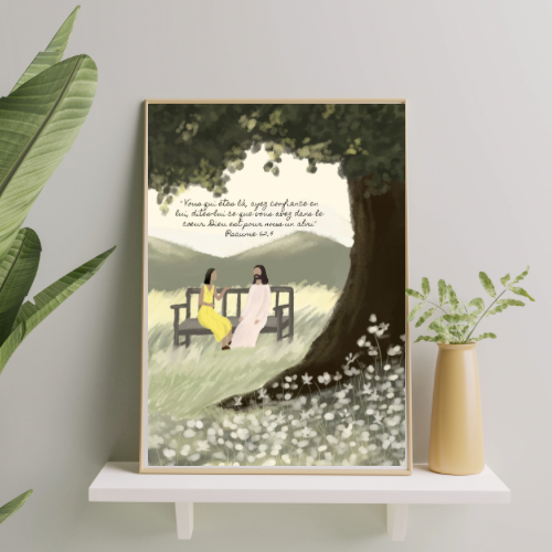 Illustration digitale chrétienne du verset Psaume 62:9, imprimée sur un papier photo satiné